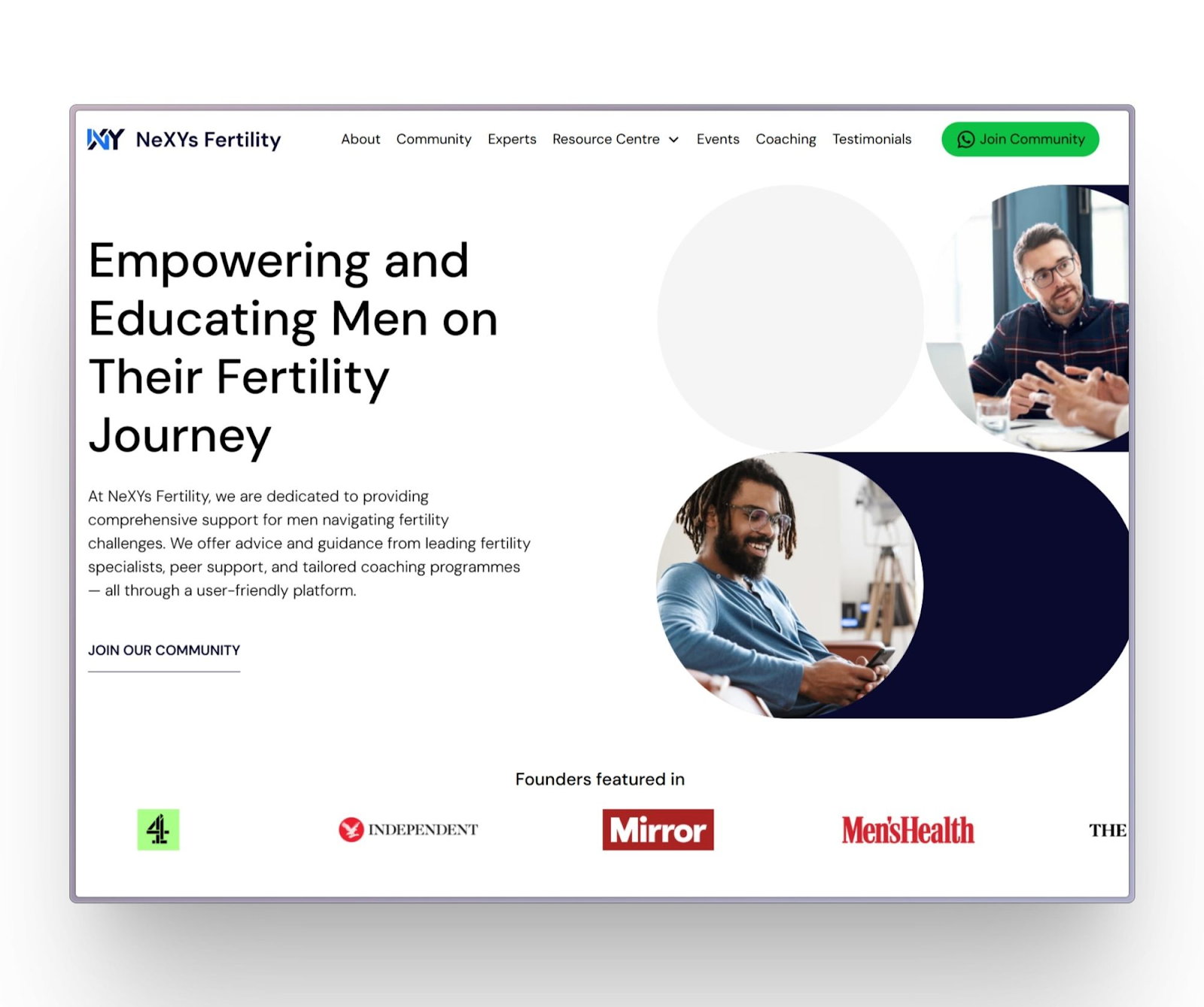 NeXYs Fertility, a startup focusing on male fertility, had a successful brand and idea but lacked a launch-ready digital presence needed to attract investors and early adopters.