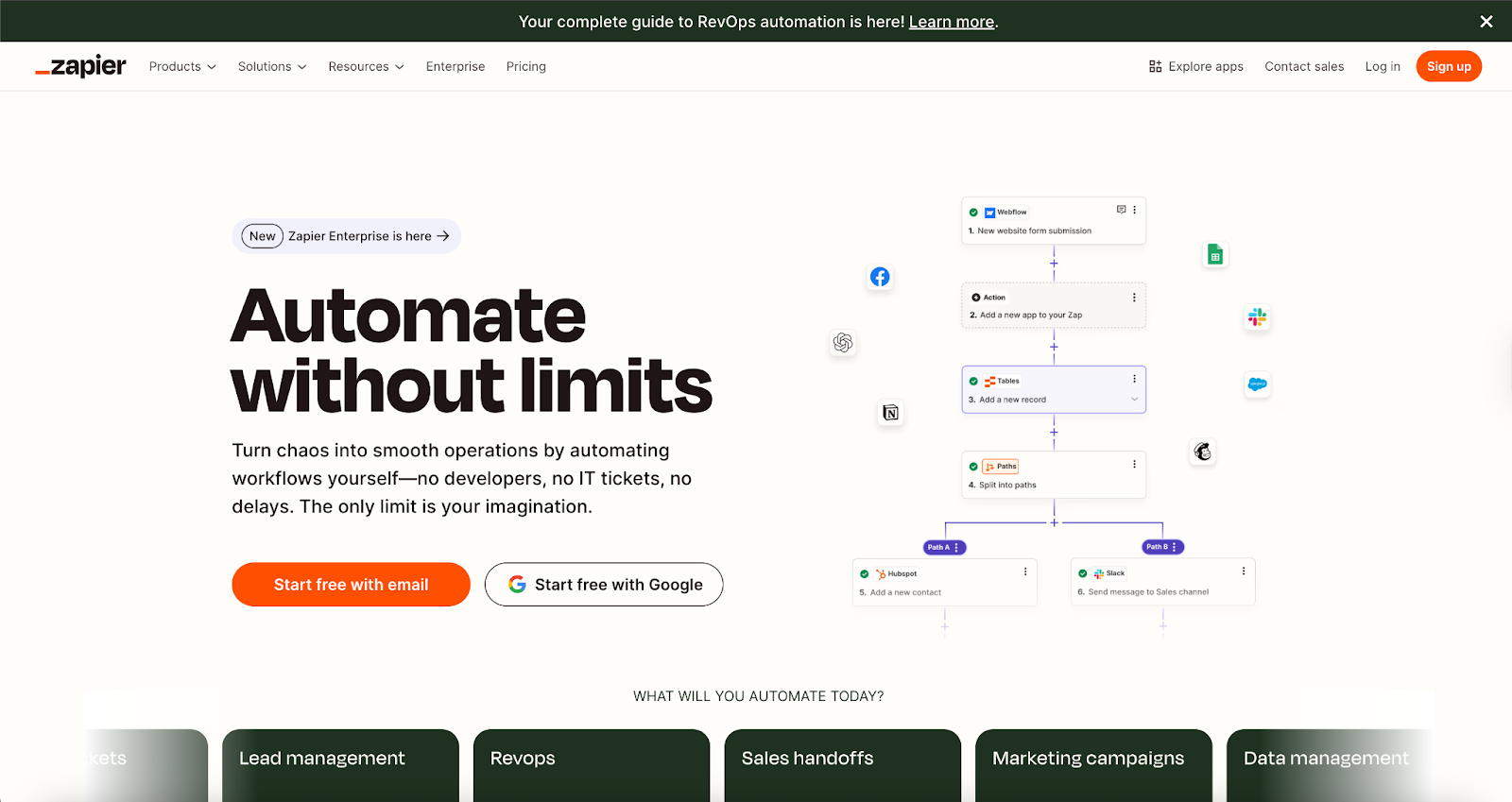 Webflow + Zapier lets you automate everything from lead capture and email marketing to analytics and content distribution—no code required.