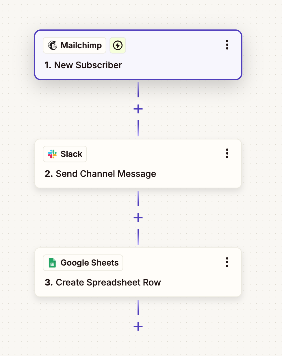 - Step 1 (Mailchimp): Add the new lead to a specific list.