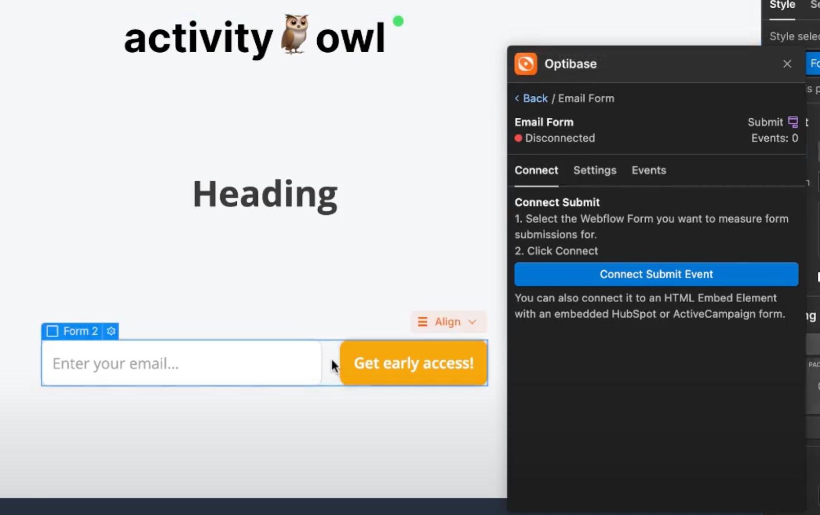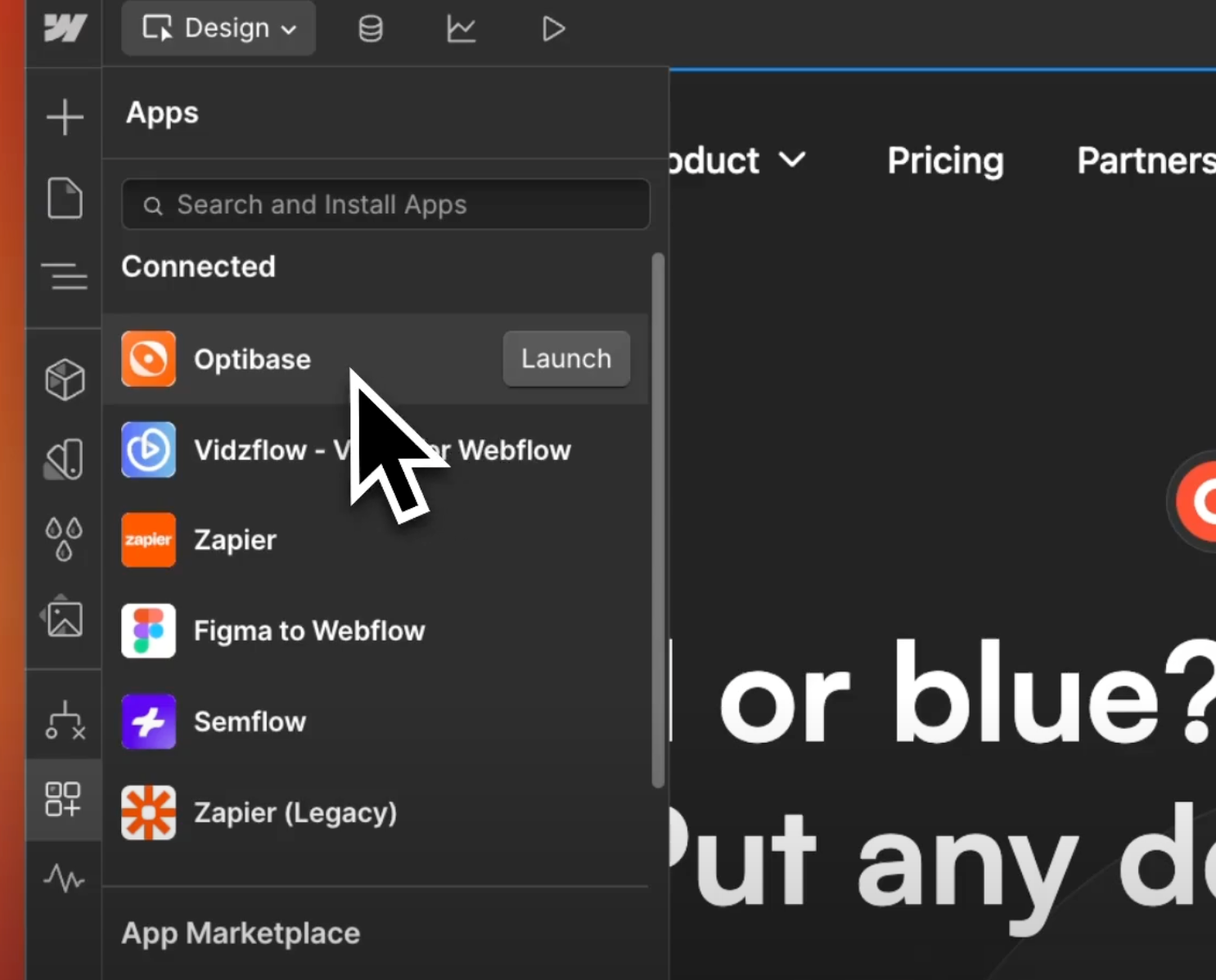 - Open the Optibase App inside the Webflow Designer.