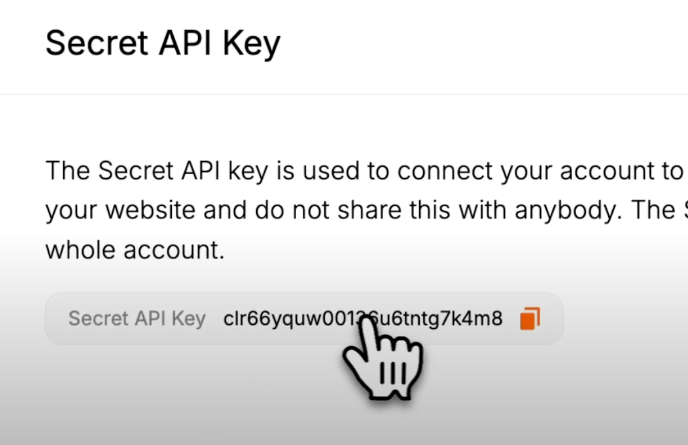 - Go back to the Optibase web app, navigate to User > API Keys, and copy your secret API key.